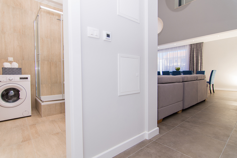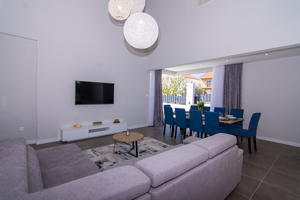 Das fantastische Ferienhaus mit Pool bietet fünf Schlafzimmer, fünf Badezimmer, ein Wohnzimmer mit Küche und Essbereich sowie ein komplett umzäuntes Grundstück mit Pool, Grill und Kinderspielplatz. Hinter diesem Haus befindet sich ein weiteres identisches Ferienhaus mit Pool, so dass die beiden Häuser zusammen für Urlaube von größeren Gruppen bis max. 20 Personen geeignet sind. Bitte beachten Sie den wichtigen Hinweis, dass die Gäste des Nachbargrundstücks dieses Grundstück als Durchgang mitbenutzen. Somit wird der Durchgangsbereich des Grundstücks mit anderen Gästen geteilt. Der Ort Kaštel Kambelovac gehört zu sieben nebeneinander liegenden Kaštel Orten, die durch eine Promenade verbunden sind. Hier finden Sie alles, was für einen angenehmen Mittelmeerurlaub benötigt wird und einen exzellenten Yachthafen. Besuchen Sie die nahe gelegenen historischen Städte Trogir und Split.